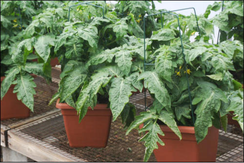 Patio tomatoes, basil, Romaine lettuce, iceberg